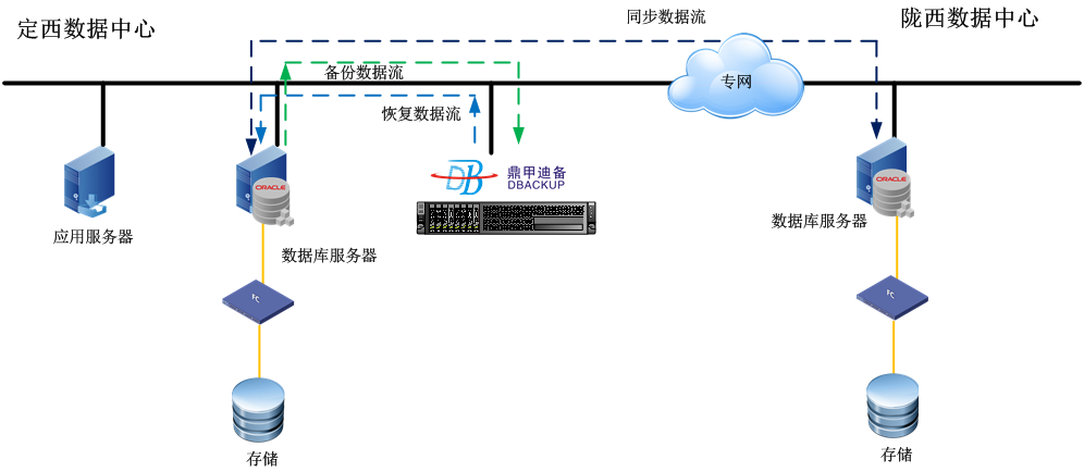 在甘肅省定西市住房公積金管理中心定西數(shù)據(jù)中心部署鼎甲迪備備份容災(zāi)軟件,備份服務(wù)器及存儲介質(zhì)由一臺IBM x86服務(wù)器組成,針對基于AIX小型機(jī)上的Oracle數(shù)據(jù)庫進(jìn)行自動的實(shí)時(shí)的數(shù)據(jù)庫保護(hù),Oracle數(shù)據(jù)庫進(jìn)行全面的全量、增量的自動備份,通過壓縮、重刪提高數(shù)據(jù)備份效率;隴西數(shù)據(jù)中心部署與定西機(jī)房一致的Oracle數(shù)據(jù)庫環(huán)境,通過鼎甲迪備備份容災(zāi)系統(tǒng)與定西數(shù)據(jù)中心Oracle數(shù)據(jù)庫形成數(shù)據(jù)庫同步系統(tǒng),將定西數(shù)據(jù)中心Oracle數(shù)據(jù)庫同步到隴西數(shù)據(jù)中心Oracle數(shù)據(jù)庫,實(shí)現(xiàn)備份數(shù)據(jù)的異地災(zāi)備,避免災(zāi)難性事件造成本地備份數(shù)據(jù)丟失的風(fēng)險(xiǎn)。